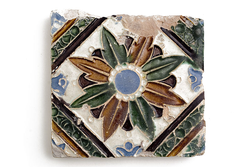 Spaans-Moorse wandtegel, datering circa 1500, Stadhuismuseum Zierikzee. Aardewerk, hoogte 15 cm, breedte 15 cm.