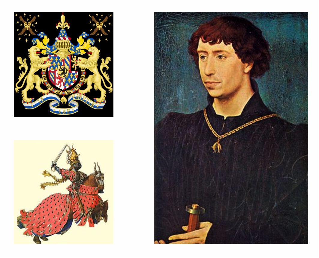Mher Joos en Karel de Stoute met zijn persoonlijk wapen.