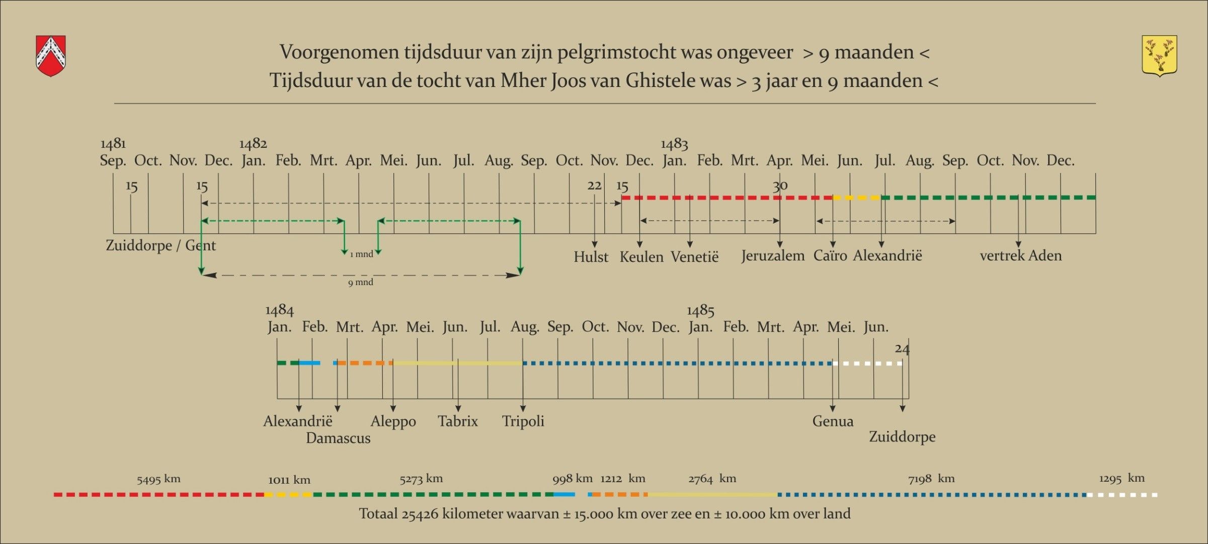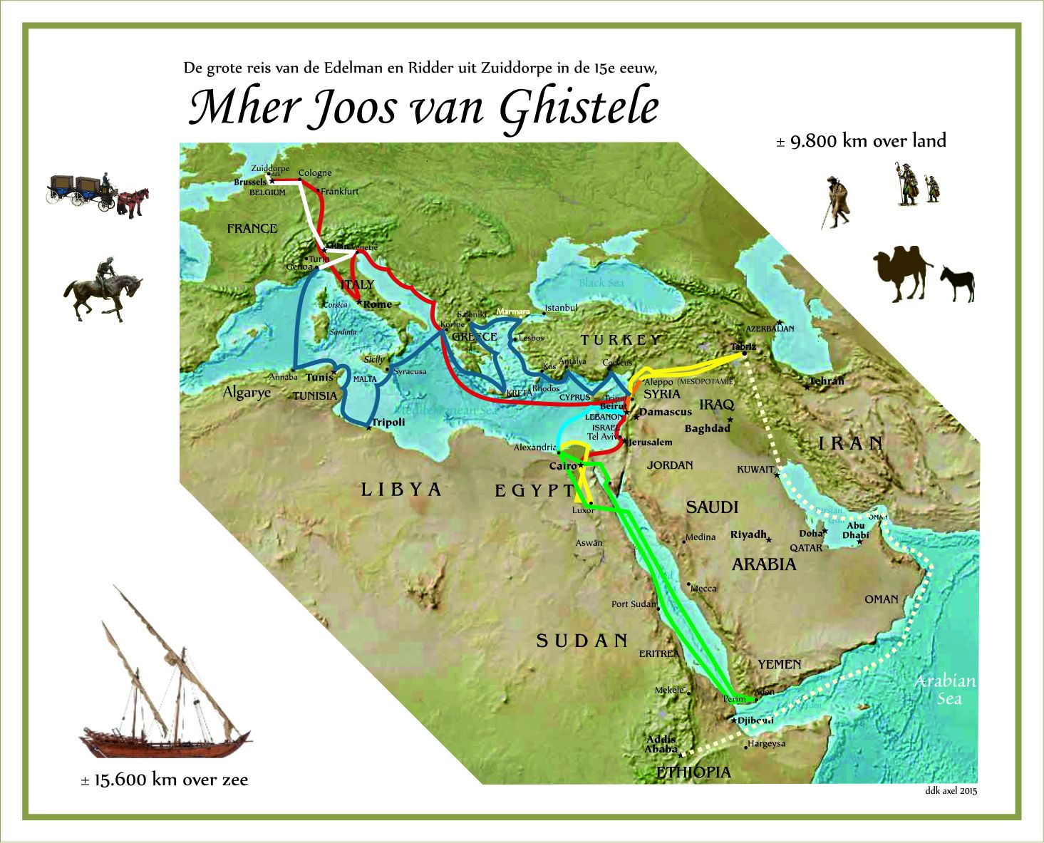 De edelman en ridder Mher Joos van Ghistele (1446-1516), die ook wel ‘De Grote Reiziger uit Zuiddorpe’ wordt genoemd, behoorde tot de oudste en invloedrijkste adellijke families van Vlaanderen. Hij was heer van Maelstede, Moere, Axel en Hulst en erfschout van de Vier Ambachten. Als zodanig was hij in het bezit van het patronaat in Hontenisse, Ossenisse, Beoostenblij, Zaamslag en Zuiddorpe. Tussen 1481 en 1485 heeft hij een indrukwekkende reis gemaakt naar het Heilige Land en de Arabische Wereld, waarvan hij een dagboek heeft bijgehouden. Na zijn dood, in 1516, is hiervan een boek verschenen “Tvoyage van Mher Joos van Ghistele” dat is geschreven door een zekere priester Ambrosius Zeebout.